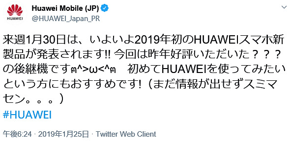 ファーウェイ、1月30日に新スマホ発表