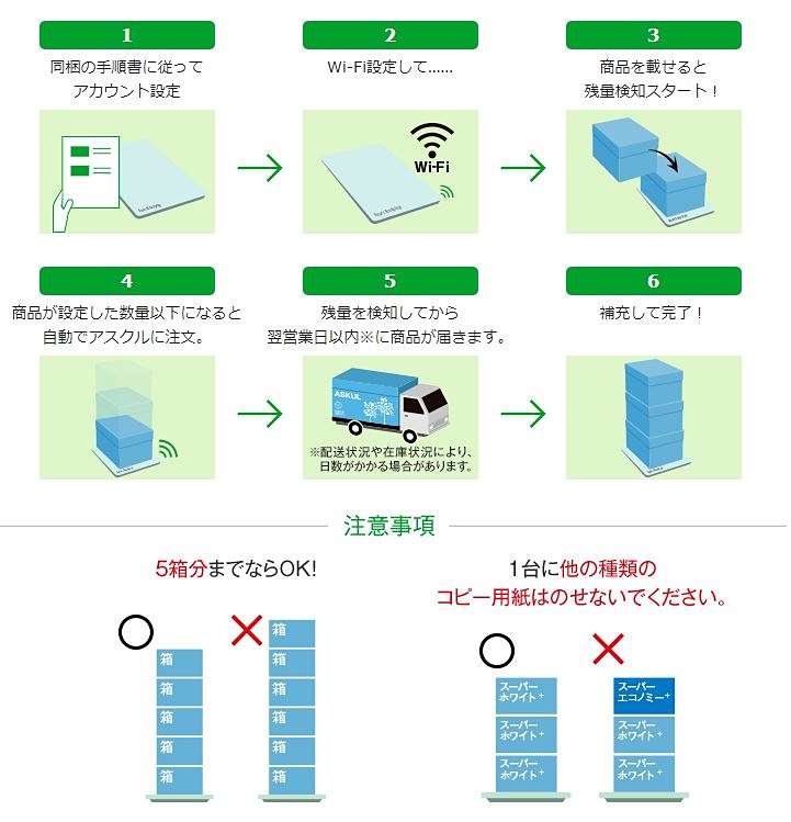 アスクル、コピー用紙が減ったら自動的に配送する新サービス