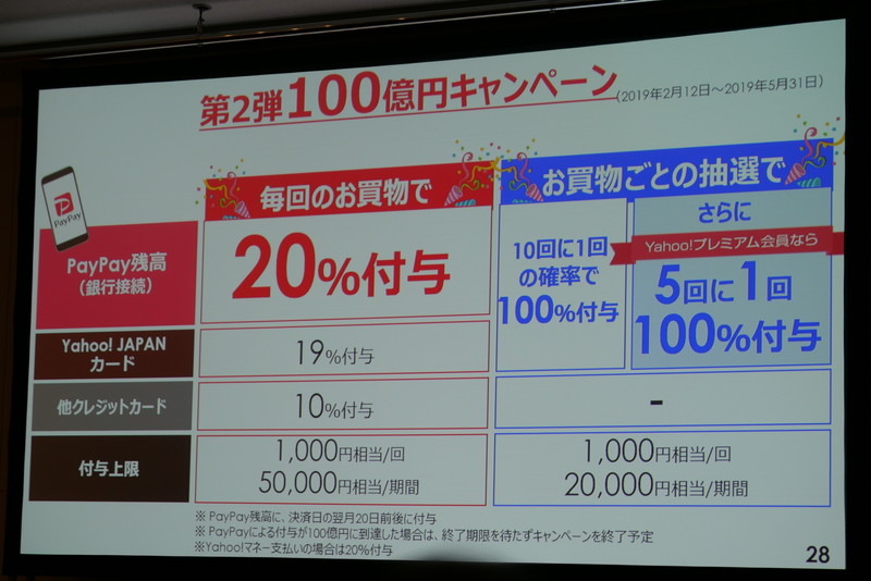• PayPay、買い物ごとに20%/月最大5万円を還元