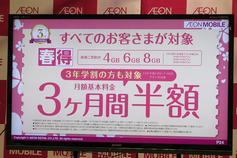• 音声プランが8月まで半額、「イオンモバイル」2周年キャンペーンで