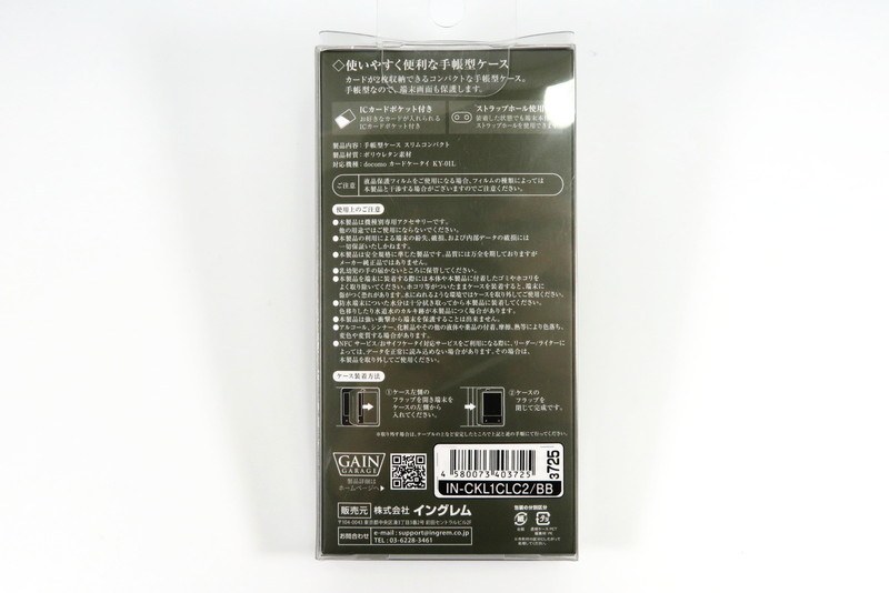 カードケータイ KY-01L 手帳型ケース スリムコンパクト ブラック/ブラック