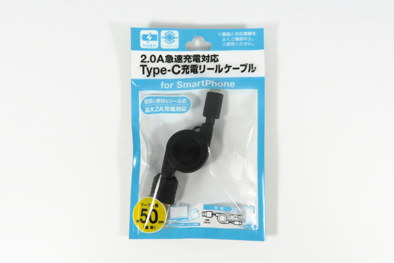【100均で買えるスマホグッズ】2.0A急速充電対応Type-C充電リールケーブル