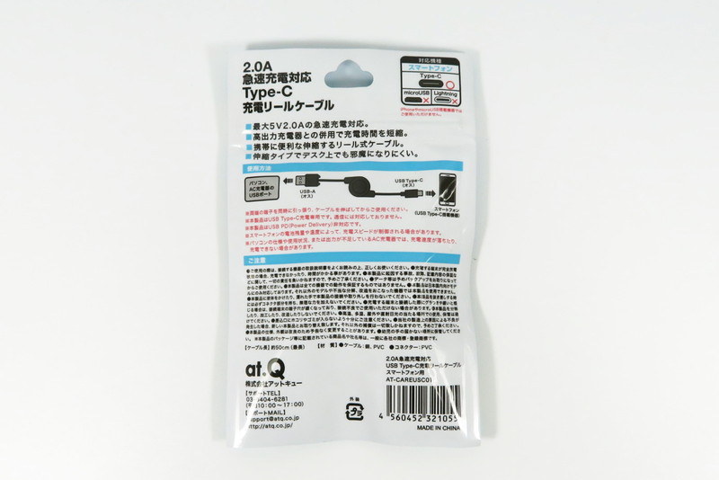 【100均で買えるスマホグッズ】2.0A急速充電対応Type-C充電リールケーブル