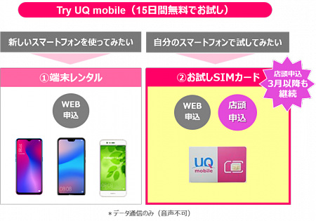 UQ mobileの無料お試しSIM、期間限定で店頭受付