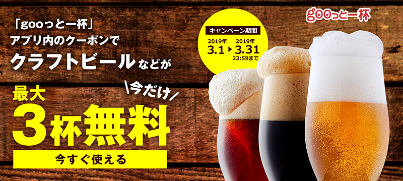 ビール検索アプリ「gooっと一杯」、クラフトビール最大3杯無料