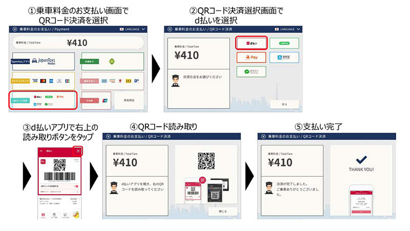 ドコモのd払い、JapanTaxiタブレット搭載タクシーで利用可能に