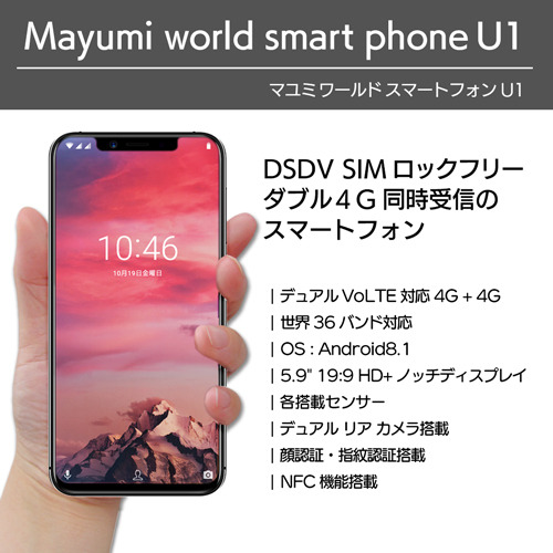 世界36バンド対応の「Mayumi World Smartphone U1」予約受付開始、12月発売で2万9800円