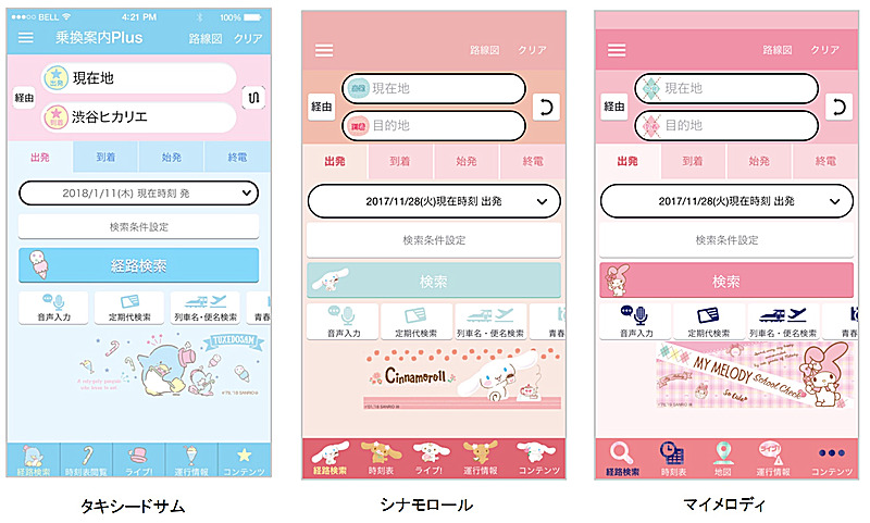 Android版の乗換案内、サンリオキャラクターのテーマに着せ替えする機能