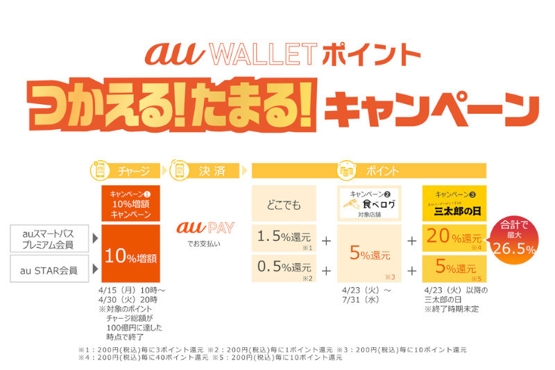 au「三太郎の日」、4月特典はファミマでお茶ペットボトル・からあげ串など