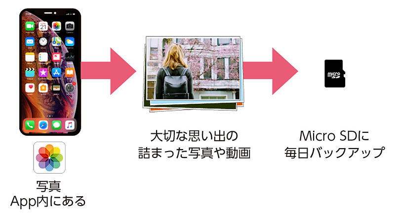 充電するたびに自動バックアップ、ACアダプターにつなげるiPhone用カードリーダー