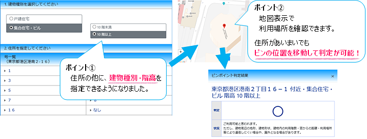 UQ、住所入力で判定できる「ピンポイントエリア判定」