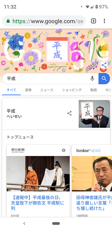 グーグルのDoodle、「平成」最後の日にあわせたロゴ