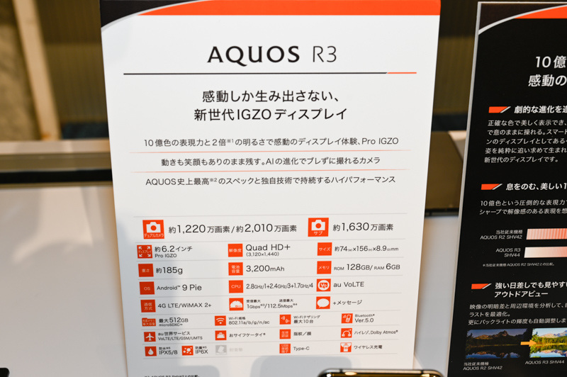 auから「AQUOS R3」、10億色の「Pro IGZO」液晶を搭載(13/18)