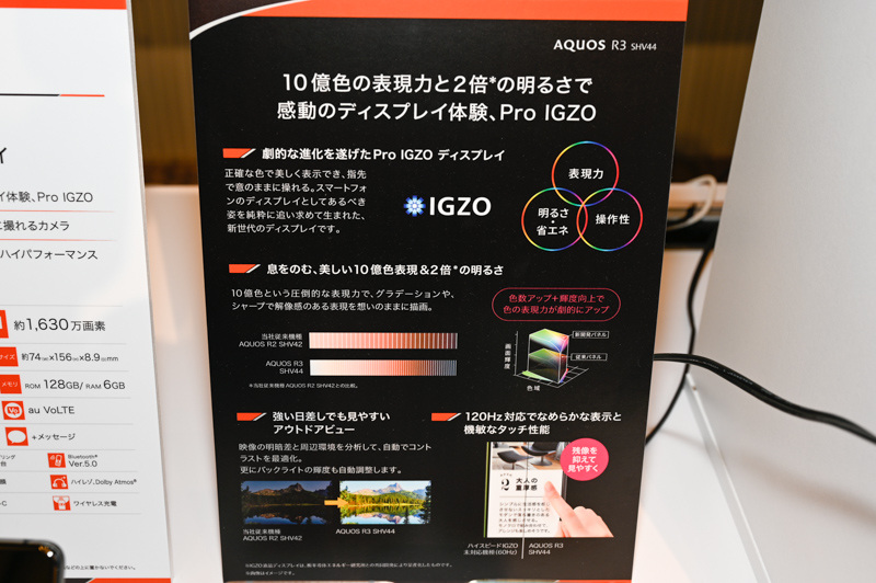 auから「AQUOS R3」、10億色の「Pro IGZO」液晶を搭載(14/18)