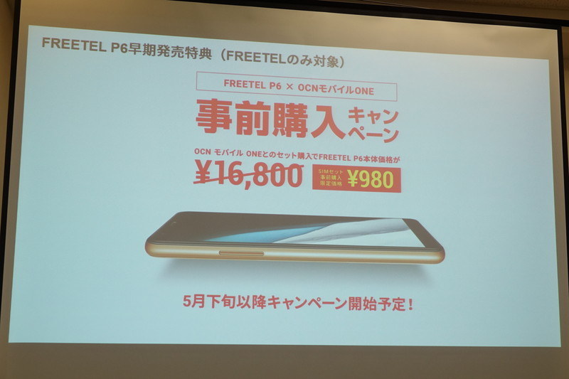 • クラウドSIMスマホ「FREETEL P6」が980円、「OCN モバイル ONE」SIMセットで