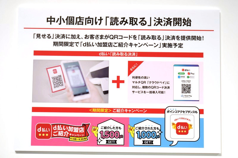 • d払いがコードを「読み取る」決済に対応、6月30日から利用可能に