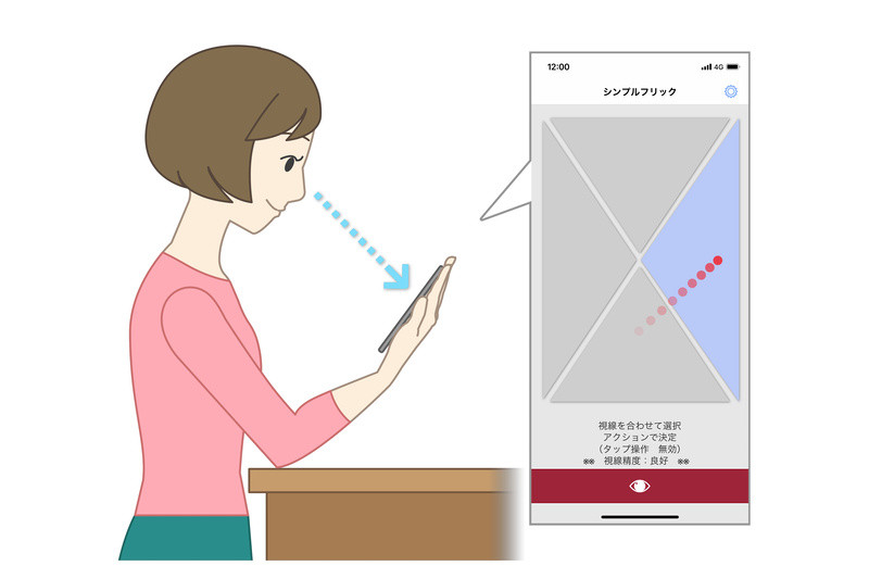 スマホの操作補助アプリ「シンプルフリック」、視線で操作が可能に