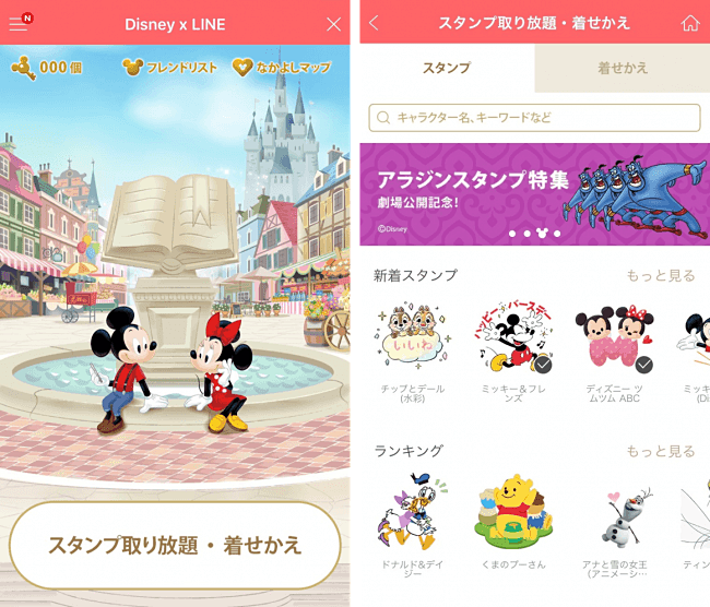 ミッキーなどディズニーのスタンプが使い放題に、有料会員登録で