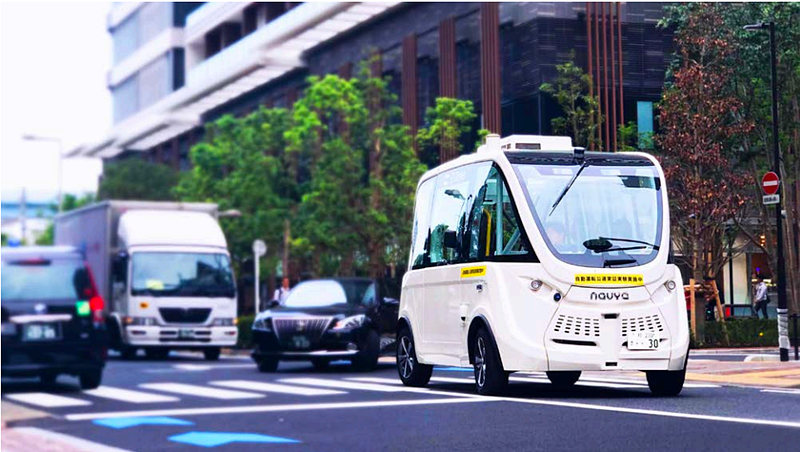 ソフトバンク、自動運転バスの一般向け試乗会を東京・丸の内で実施