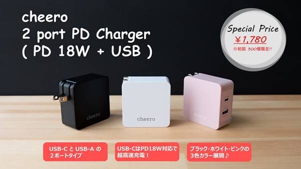 cheeroから60W対応のUSB Type-C充電器、発売記念価格で2500円