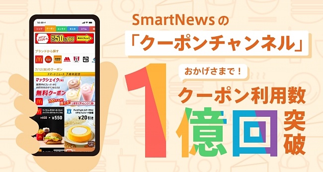 「SmartNews」のクーポンチャンネル、利用回数が1億回を突破