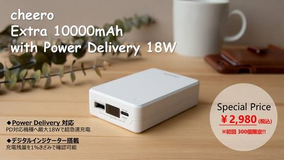 cheeroから1万mAhの小型モバイルバッテリー、USB PD 18Wに対応