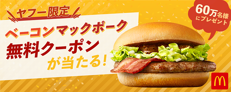 ベーコンマックポークの無料クーポン、Yahoo!のスマホアプリ限定で60万人に