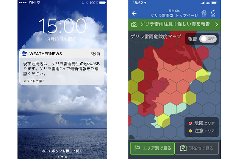 ゲリラ豪雨を59分前に予測、プッシュで知らせてくれるサービス
