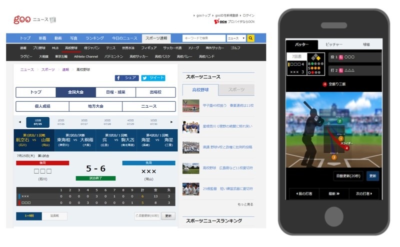 gooニュース、イラストでわかる「夏の甲子園1球速報」を提供開始