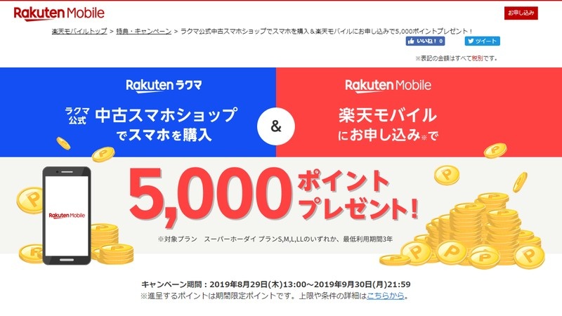ラクマと楽天モバイルがコラボ、中古スマホを買って新規契約で5000ポイントプレゼント