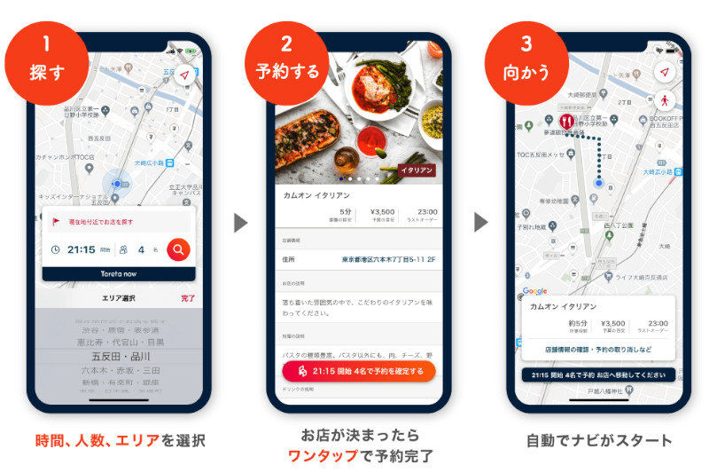 飲食店予約サービスの「トレタnow」、“徒歩10分圏内”の制限を撤廃