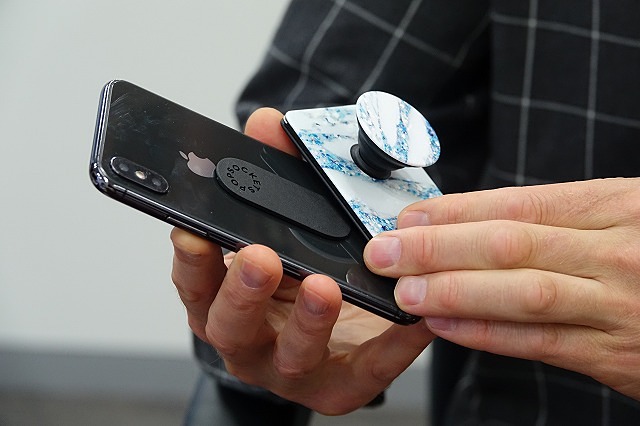 引っ張るだけで持ちやすくなるし、カードも入れられるし、コマにもできるスマホグリップ「POPSCOKETS」