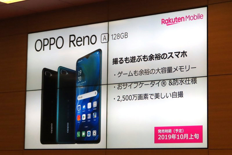 • 楽天モバイルから防水・FeliCa対応のOPPO製「Reno A 128GB」、10月上旬発売