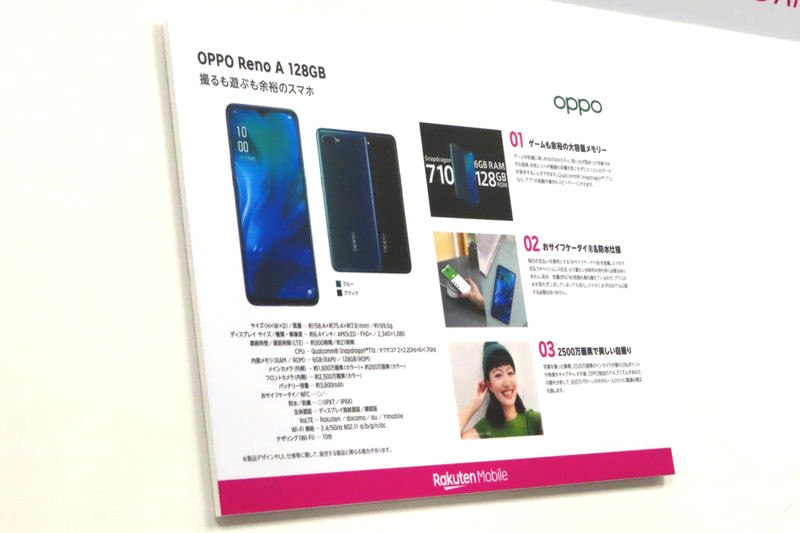 • 楽天モバイルから防水・FeliCa対応のOPPO製「Reno A 128GB」、10月上旬発売