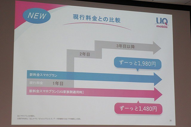 • UQ mobile、月額1480円~の新プランを発表