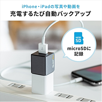 iPhoneの充電とバックアップを同時に、ACアダプターに接続する外部ストレージ