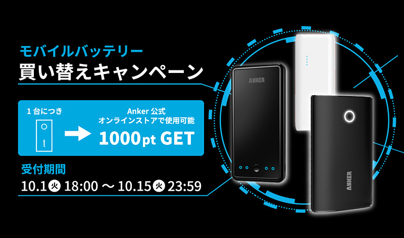 アンカーがモバイルバッテリー買い替えキャンペーン、10月15日まで