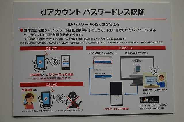 ドコモの「dアカウント」にパスワードレス認証、生体認証だけに