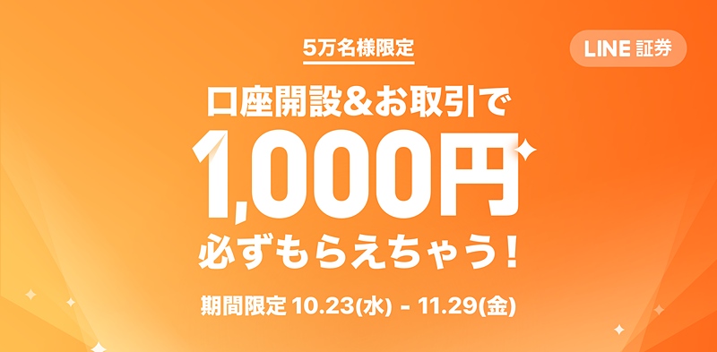 LINE証券、口座開設&取引で先着5万人にもれなく1000円プレゼント