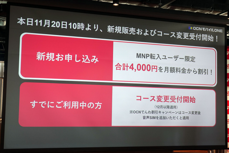 「OCN モバイル ONE」でAmazonギフトが当たるキャンペーン、「新コース」10万契約突破記念で