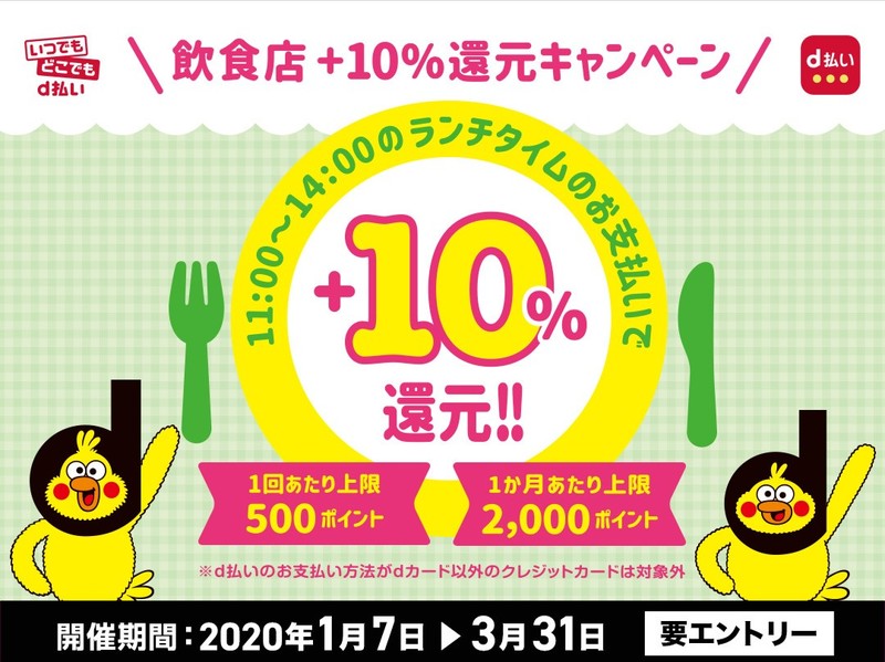 ランチタイムはd払いで10%還元、「スーパー還元プログラム」併用で最大17%の還元