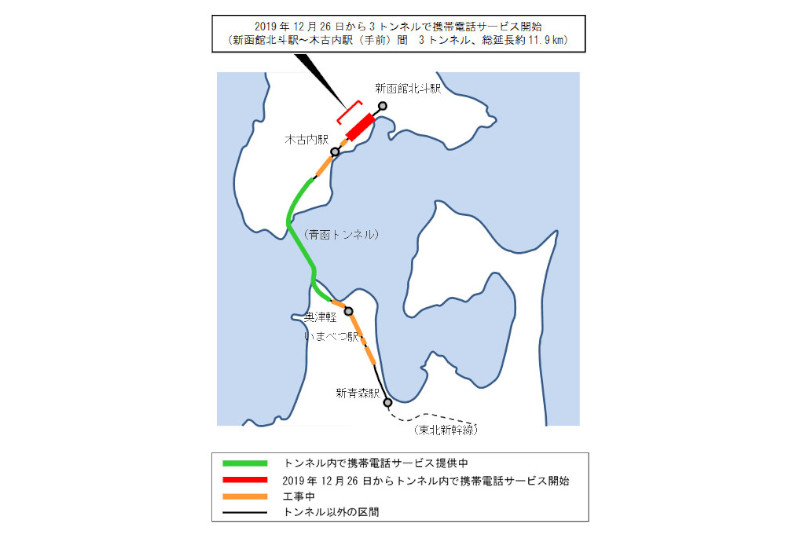 青函トンネル全区間で携帯電話が利用可能に、9月5日から