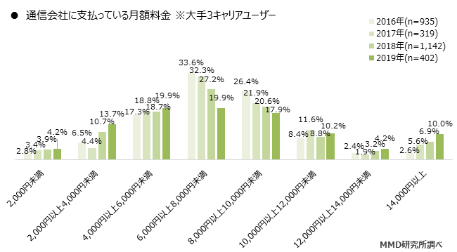3キャリア、MVNOともにユーザーの支払額は増加傾向、MMDの調査