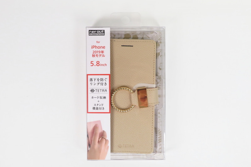 iPhone11 Pro 手帳型レザーケース TETRA リング付き ベージュ