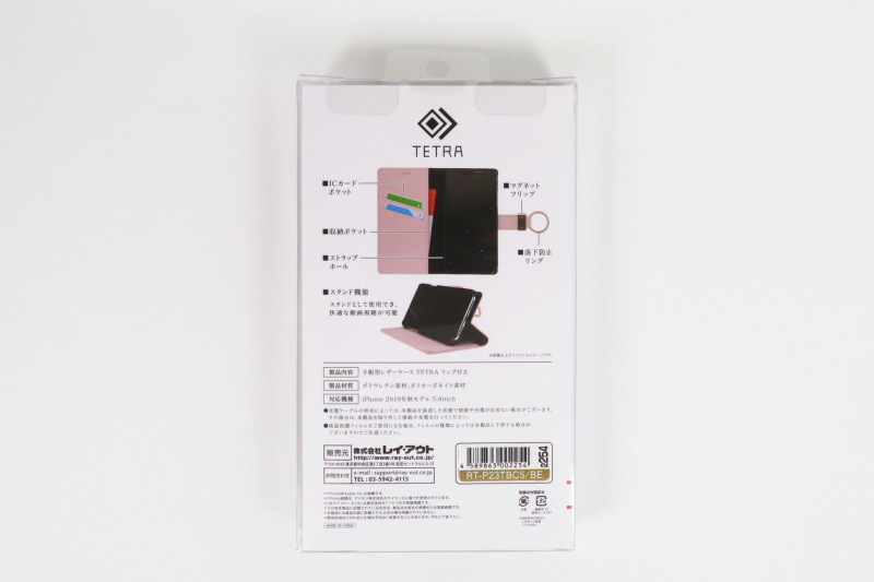 iPhone11 Pro 手帳型レザーケース TETRA リング付き ベージュ