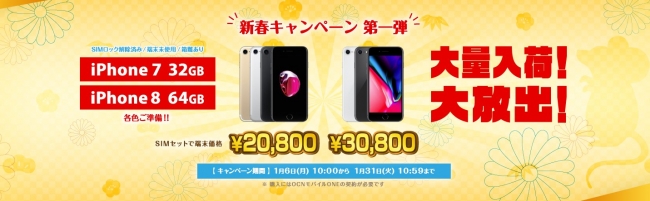 SIMロック解除済の「iPhone 7/8」未使用品を大放出、FREETELの新春キャンペーン