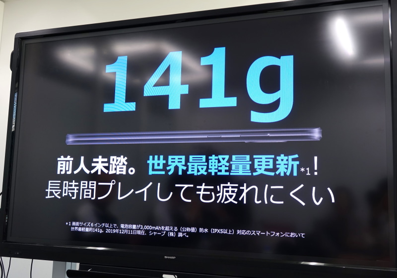 • 今冬発売予定の「AQUOS zero2」、発表時からさらに軽量化