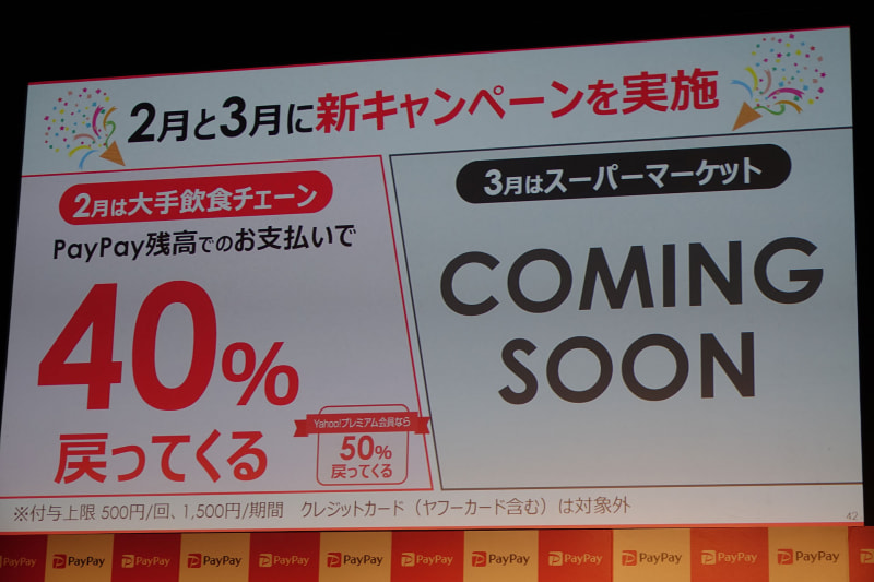 「PayPay」2月は大手飲食店で40%還元、上限は1500円