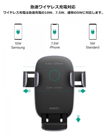 AUKEY、エアコンルーバーにセットできるQi対応の車載スマホホルダー