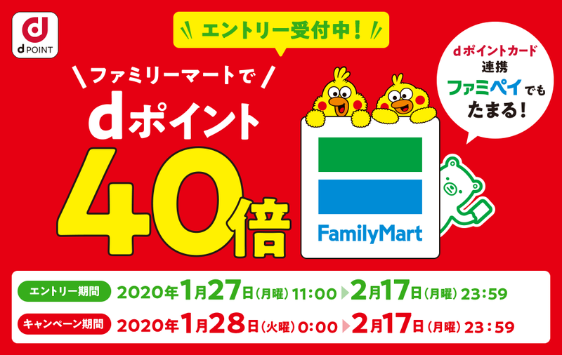 ドコモのdポイント、ファミマで200円40ポイントに増量